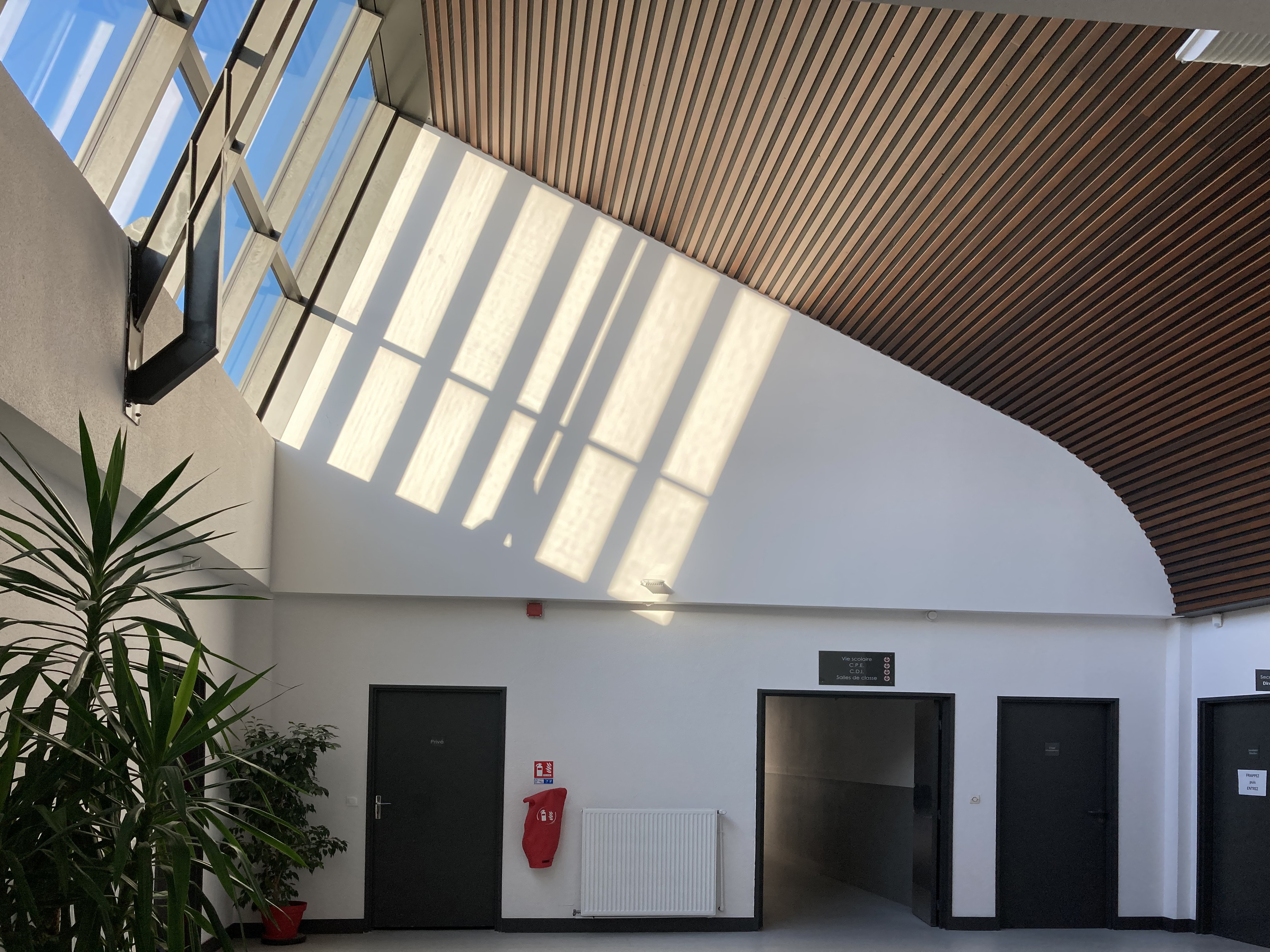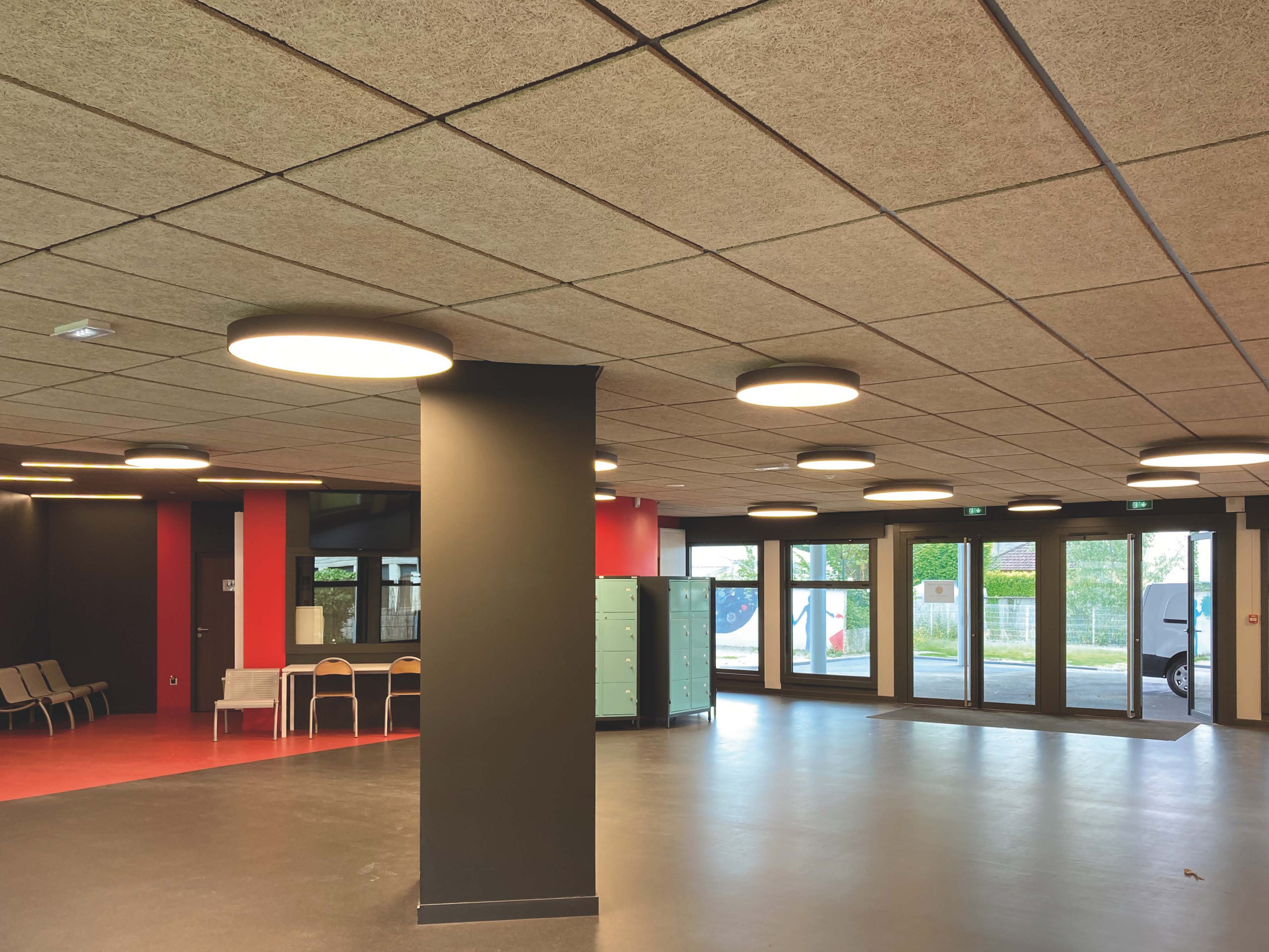 La création d’un grand préau de 200 m² de ligne simple faisant office d’espace tampon et d’abri précèdera l’accueil des élèves dans le nouveau hall.
