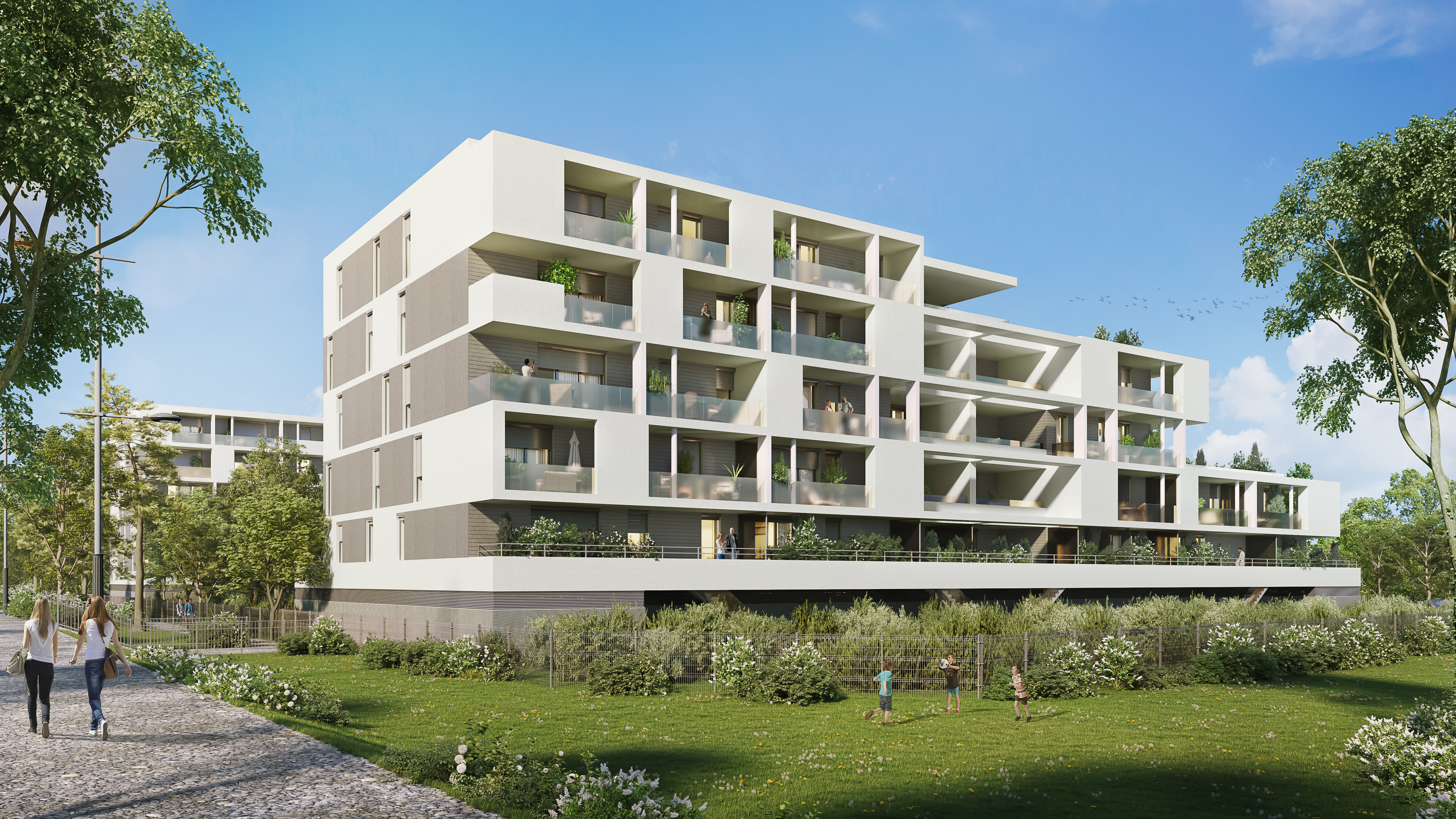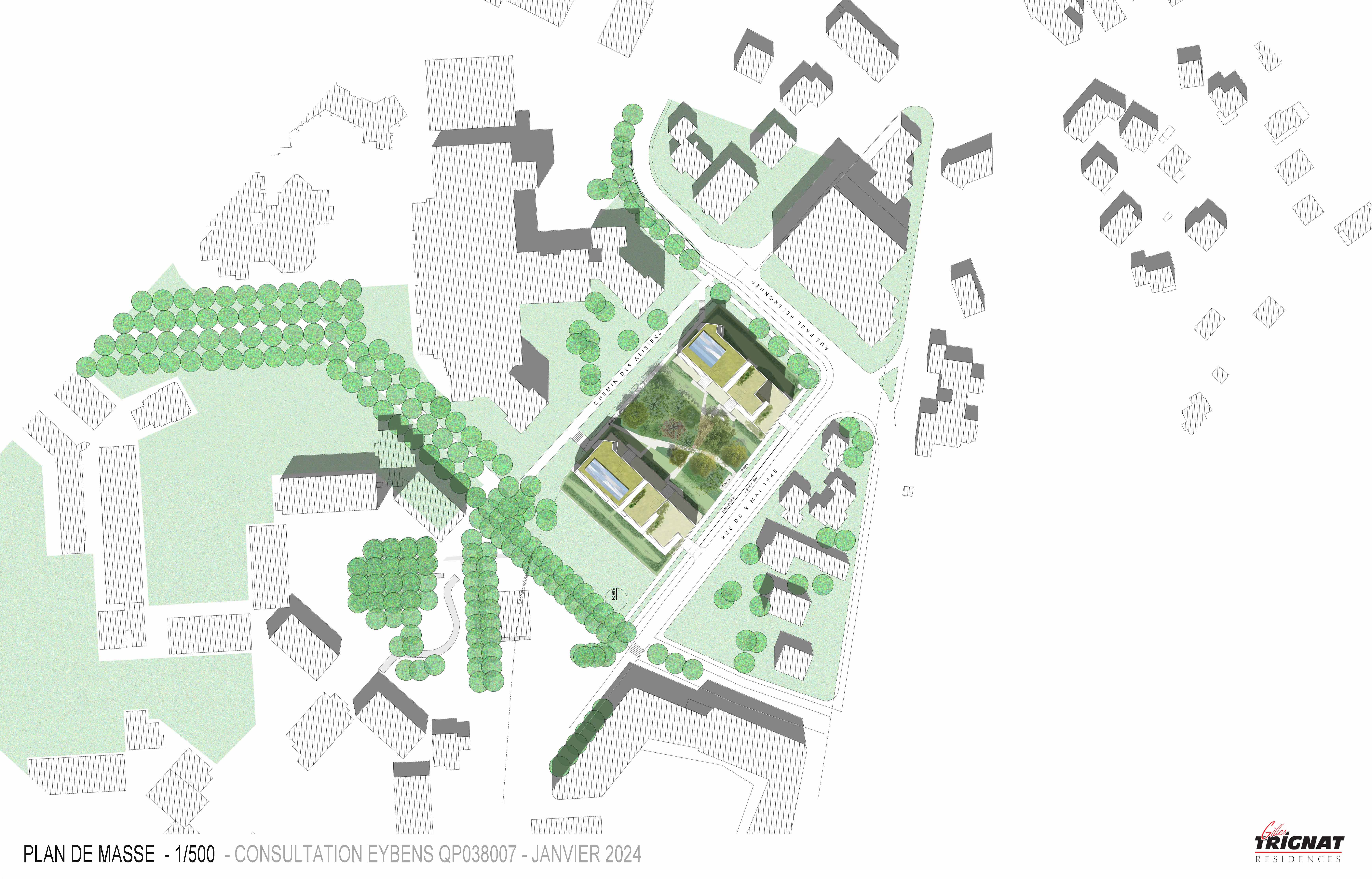 L'architecture de l'ensemble se veut pérenne, lisible et sereine. La modénature des façades exprime l’évidence d’une ouverture vers le sud-ouest en direction du parc Jean Verlhac et vers le sud-est et la rue du 8 mai 45, alors que s’expriment au nord-ouest et nord-est des façades, protectrices, lisses et pleines. Les pignons bas sur l’avenue du 8 mai 45, à l’interface d’une zone presque pavillonnaire, scandent la rue du 8 mai 1945 et laissent percevoir l’épannelage progressif du bâti et la présence centrale de la micro-forêt qui profite ainsi à tous.