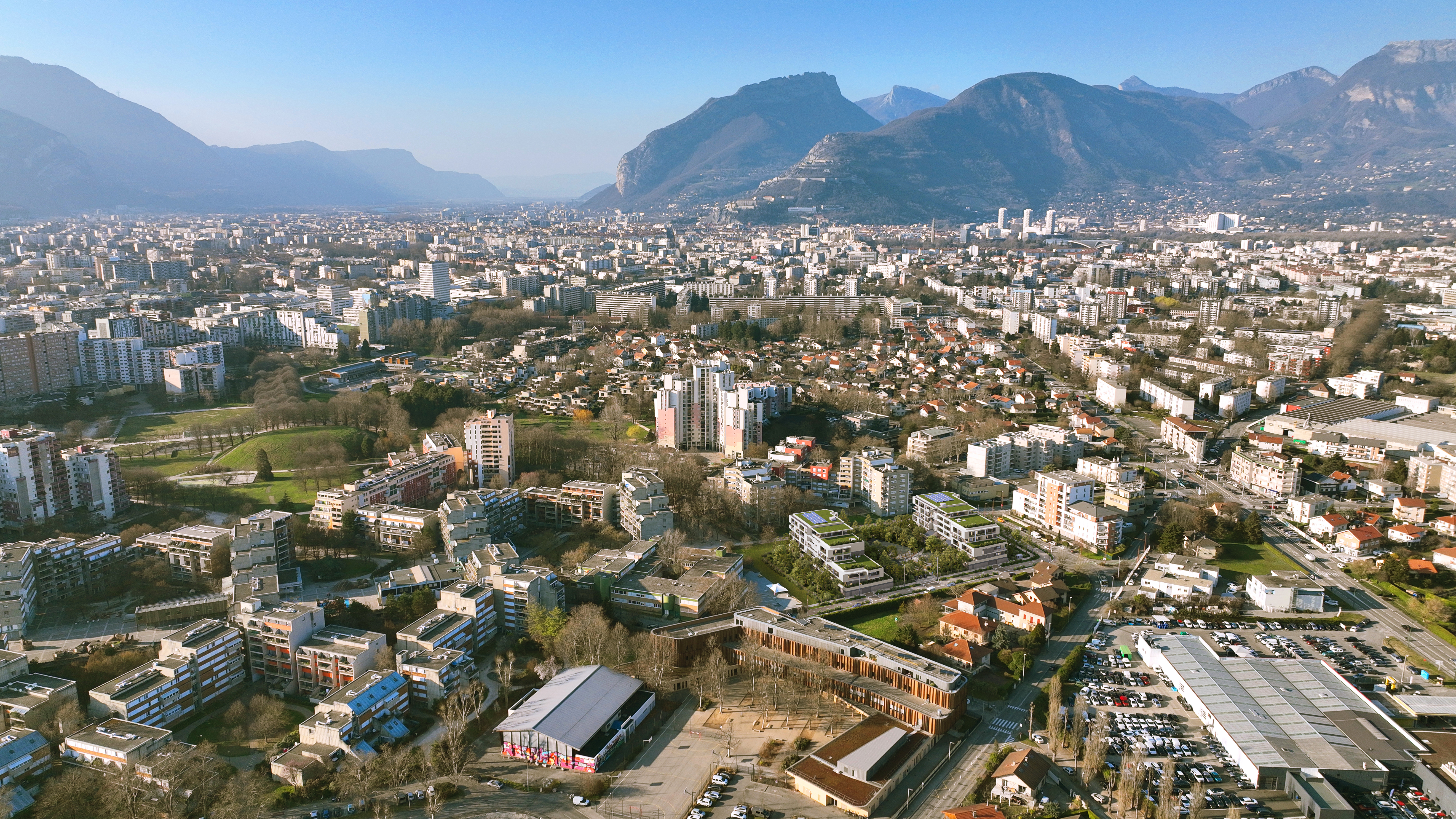 La typologie des deux bâtiments fait dos aux immeubles de grande hauteur au nord et s'ouvre à des perspectives dégagées et privilégiées vers le grand paysage, notamment au sud sur la chaine de Belledonne et sur le Vercors.