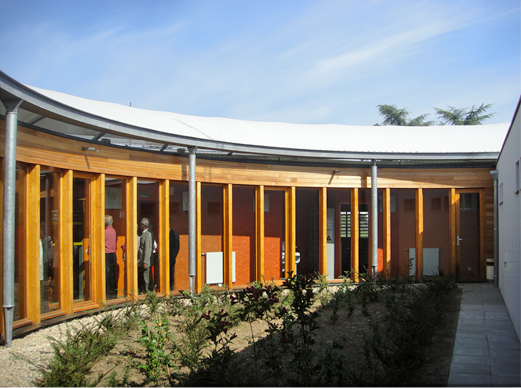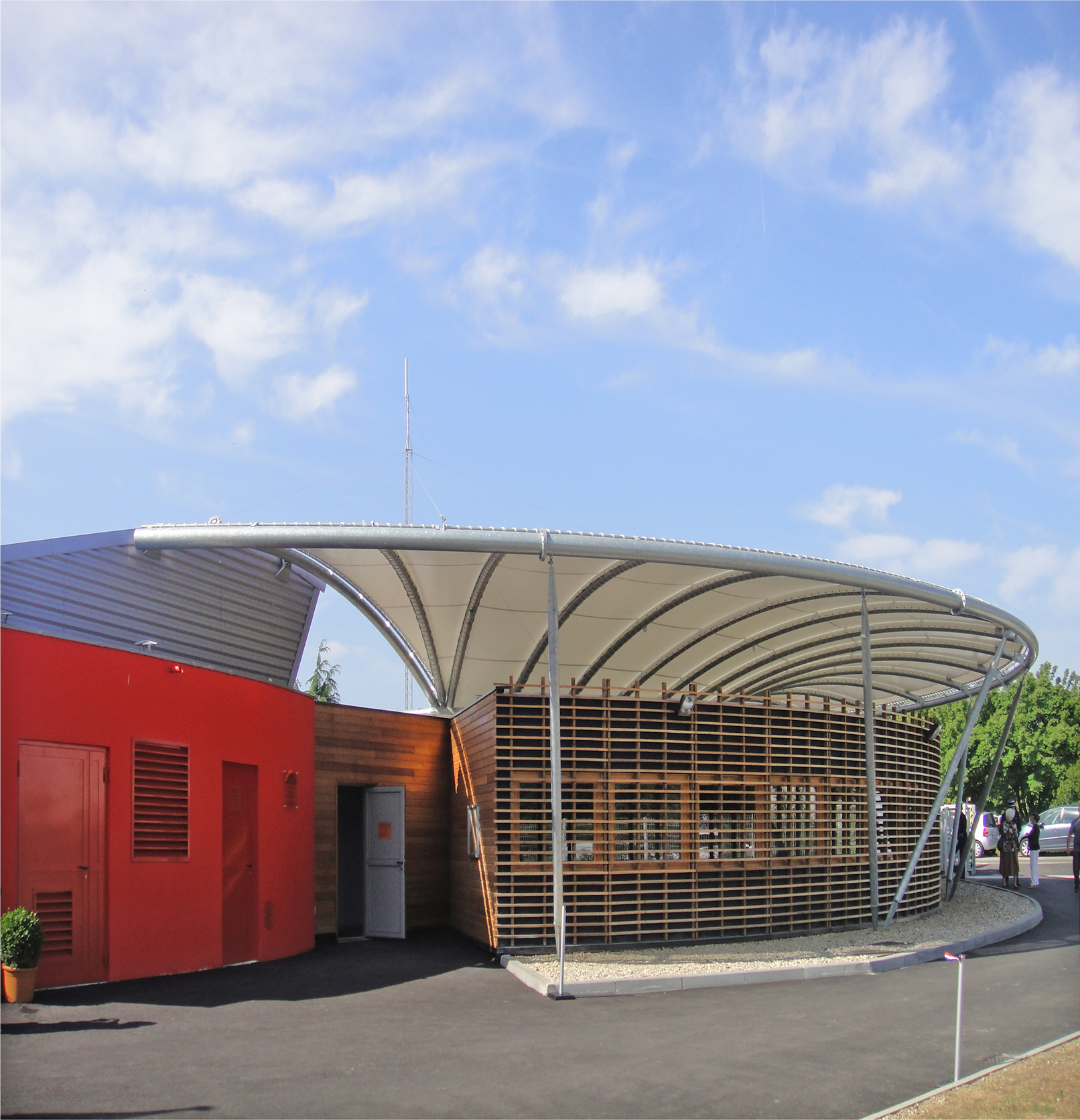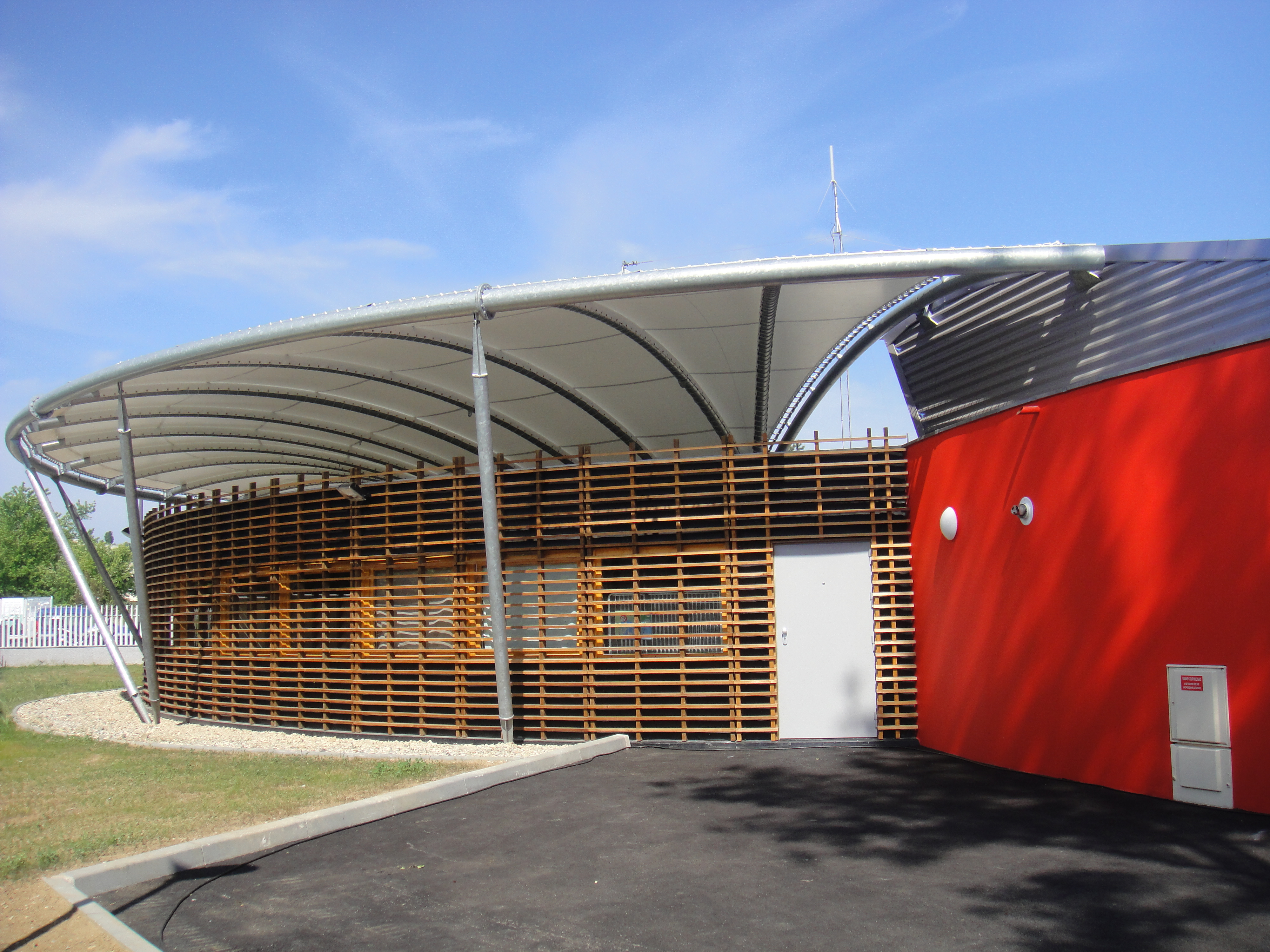 La forme et la texture du bâtiment de la gendarmerie sont simples et fortement identifiables. Le plan circulaire et la recherche d’uniformité de la texture de la façade sont les deux principaux arguments permettant de ne pas le confondre avec les constructions voisines.