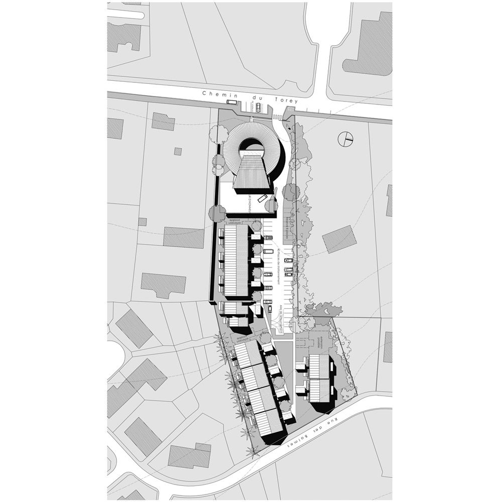 Le bâtiment gendarmerie s’implante au plus près du chemin du Torey, dans la limite des contraintes du programme.