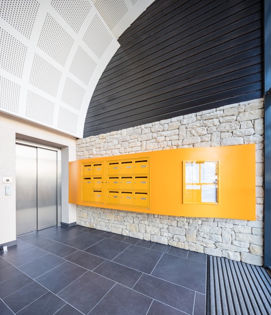 Chaque immeuble comprend 39 logements desservis par trois montées équipées chacune d’un ascenseur et comporte 3 niveaux et un attique sur rez-de-chaussée ainsi qu’un sous-sol dévolu aux stationnements.