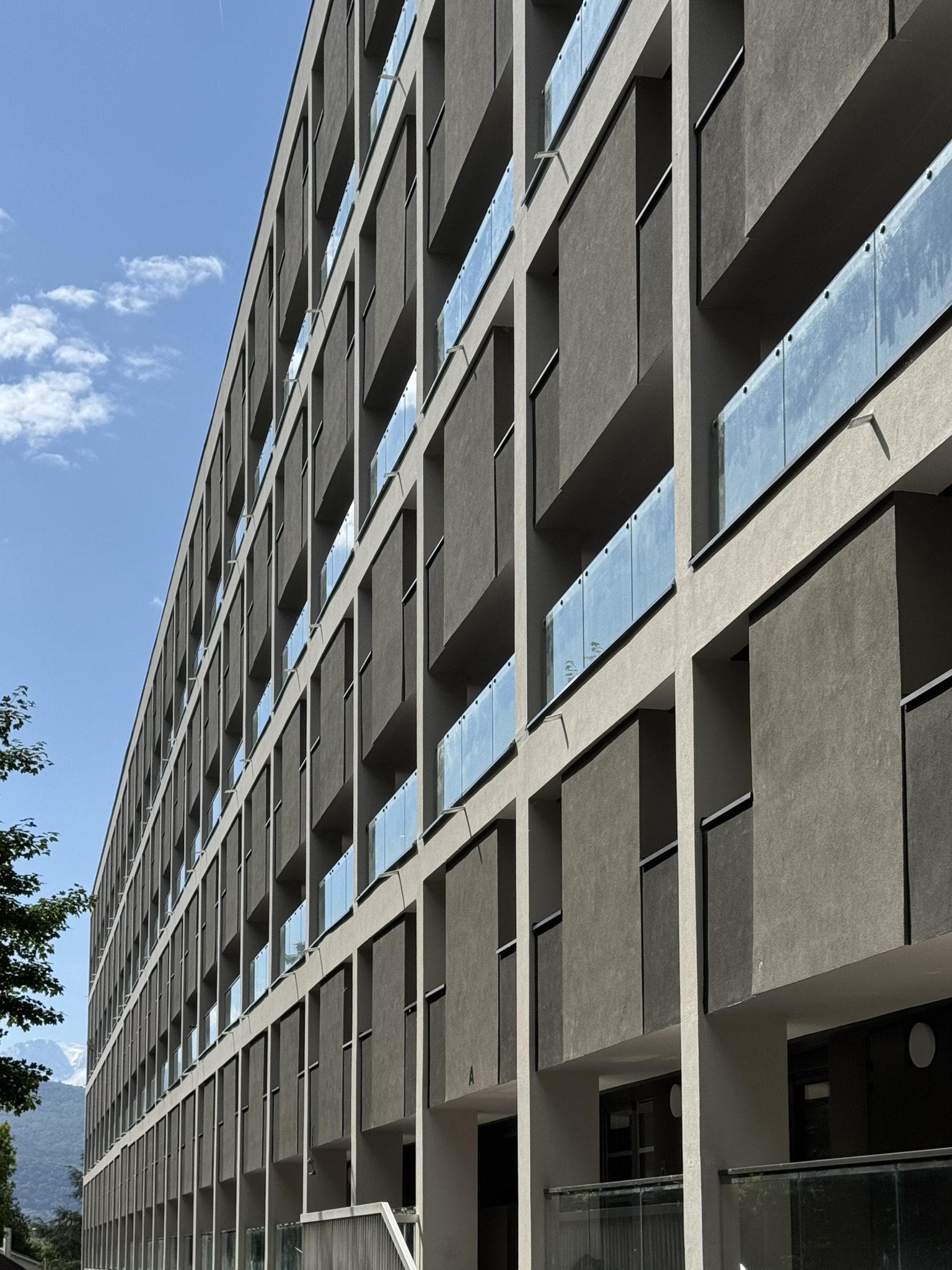 La résidence du Mont-Rachais est située sur la commune de La Tronche, au sein d’un terrain perpendiculaire à la Grande Rue.