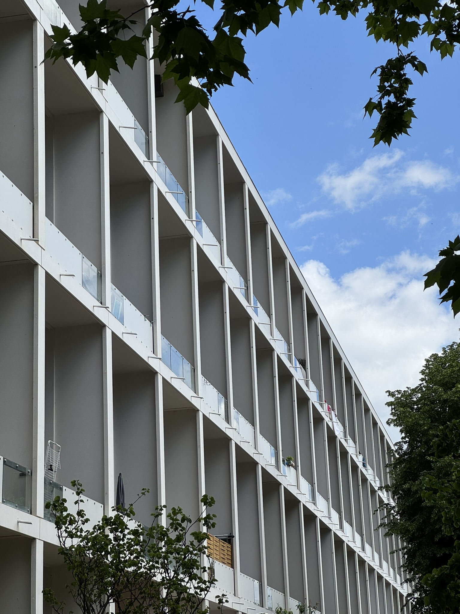 L’intervention ne porte que sur l’immeuble de 121 logements et son parc d’accompagnement. Le projet consiste en une réhabilitation thermique complète de l’ouvrage, un rafraîchissement des façades et une extension des balcons.